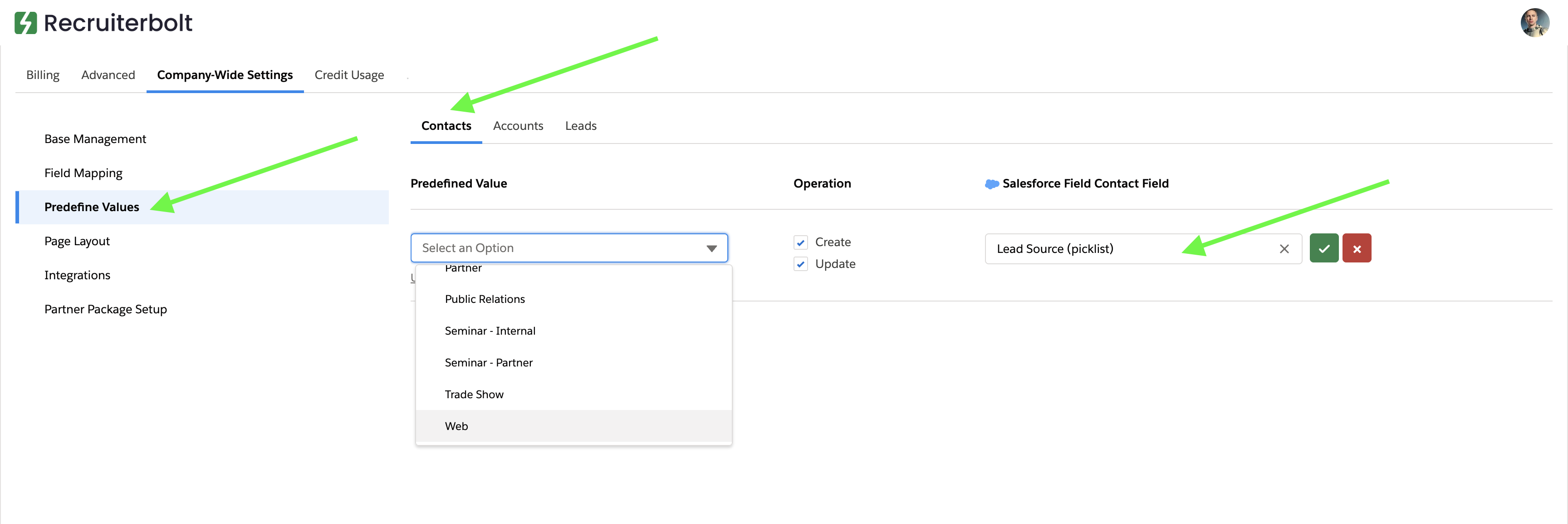 Select a Predefined Value (e.g. Web, Partner, Trade Show).